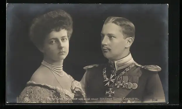 AK Prinz Eitel Friedrich in Uniform mit Braut im Abendkleid
