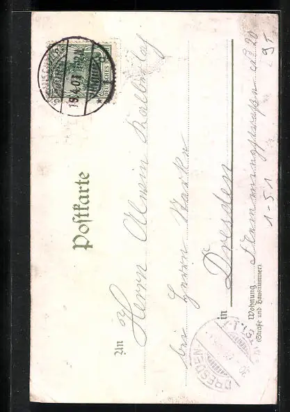 alte Ansichtskarte, gelaufen 1901, rückseitig Oberflächenschaden, Eckknick lil. unten, guter Zustand