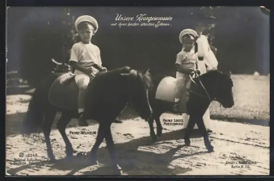 AK Prinz Louis Ferdinand und Prinz Wilhelm auf Ponys