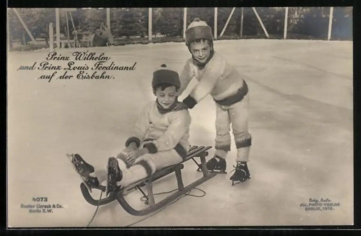 AK Prinz Louis Ferdinand und Prinz Wilhelm auf der Eisbahn