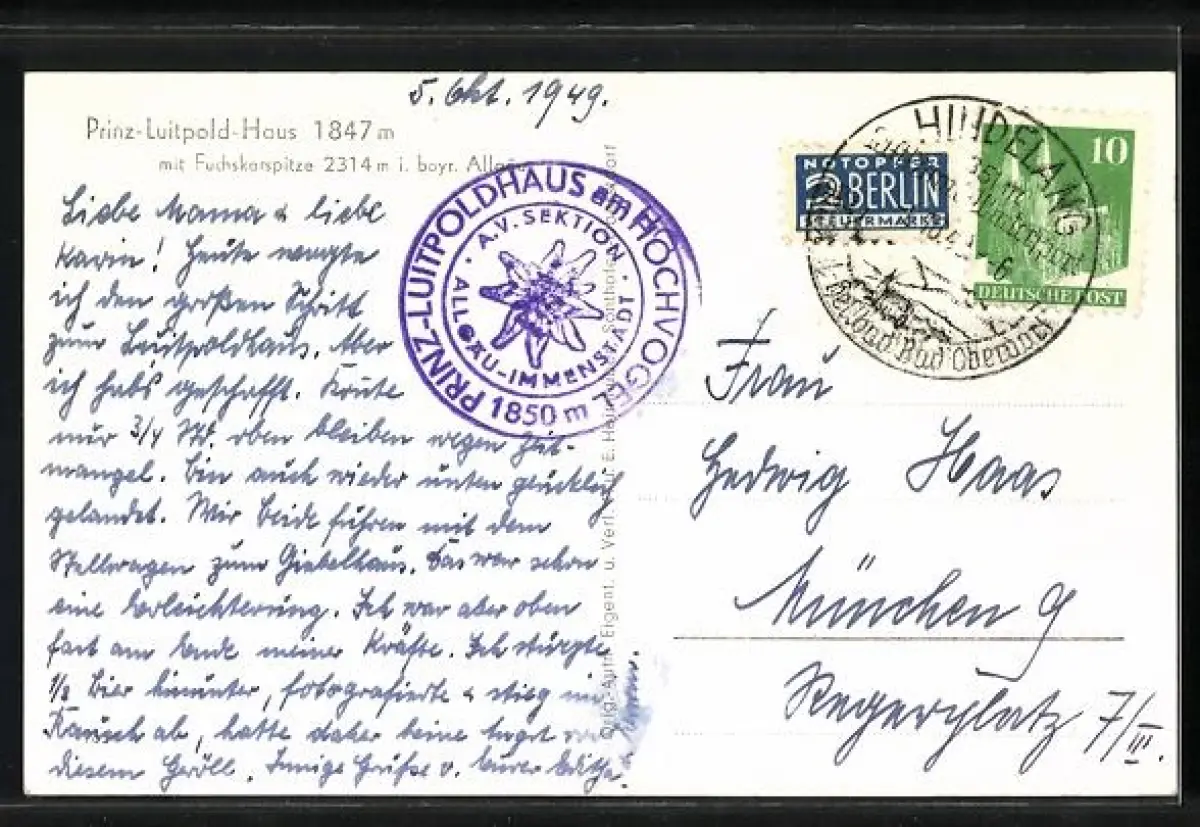 AK Prinz Luitpoldhaus, Ansicht des Hauses mit Gebirge