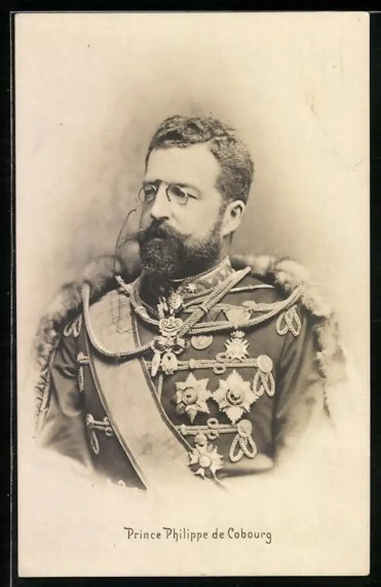 AK Prinz Philippe von Sachsen-Coburg-Gotha, in Uniform mit vielen Orden