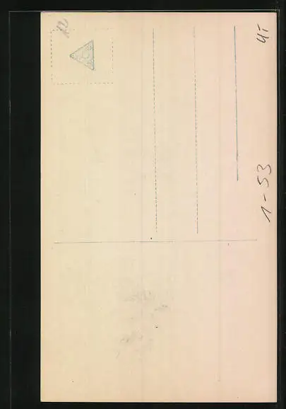 Personenbezogene Daten auf der Rückseite der Karte wurden durch blauen Textmarker unkenntlich gemacht. Die blauen Stellen sind auf die Vorderseite durchgeweicht und wirken sich negativ auf das Postkartenfoto aus