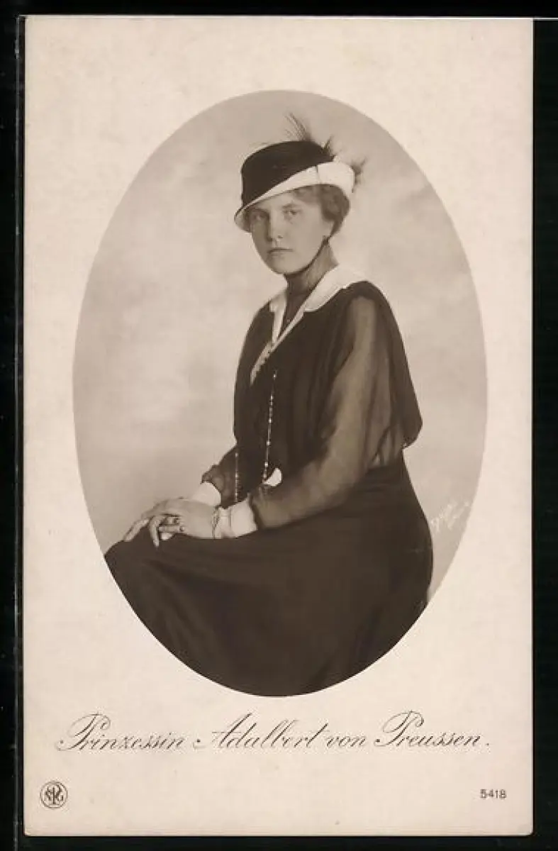 AK Prinzessin Adalbert von Preussen mit Schmuck und Hut