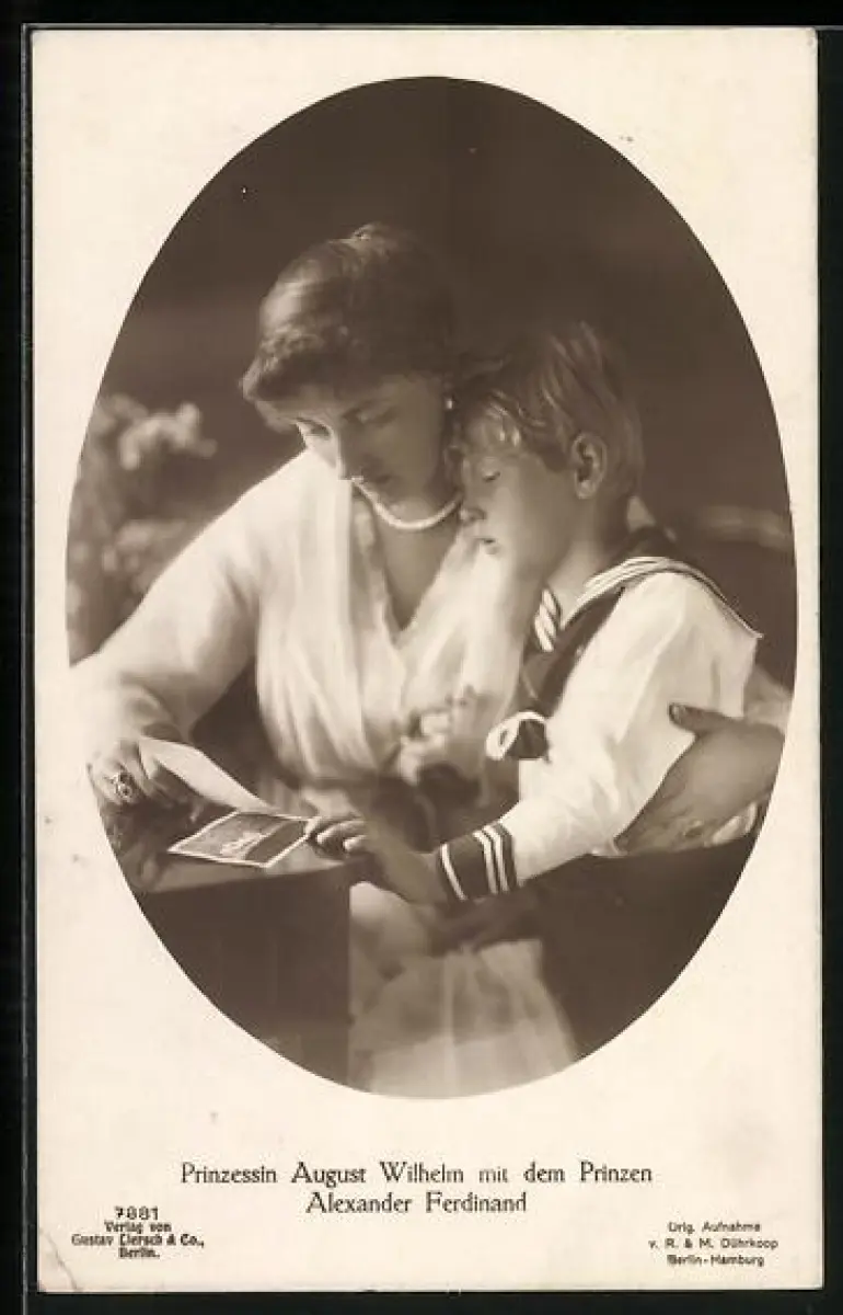 AK Prinzessin August Wilhelm mit Prinz Alexander Ferdinand lesen einen Brief