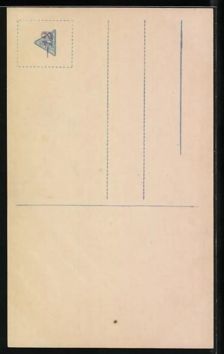 Personenbezogene Daten auf der Rückseite der Karte wurden durch blauen Textmarker unkenntlich gemacht. Die blauen Stellen sind auf die Vorderseite durchgeweicht und wirken sich negativ auf das Postkartenfoto aus