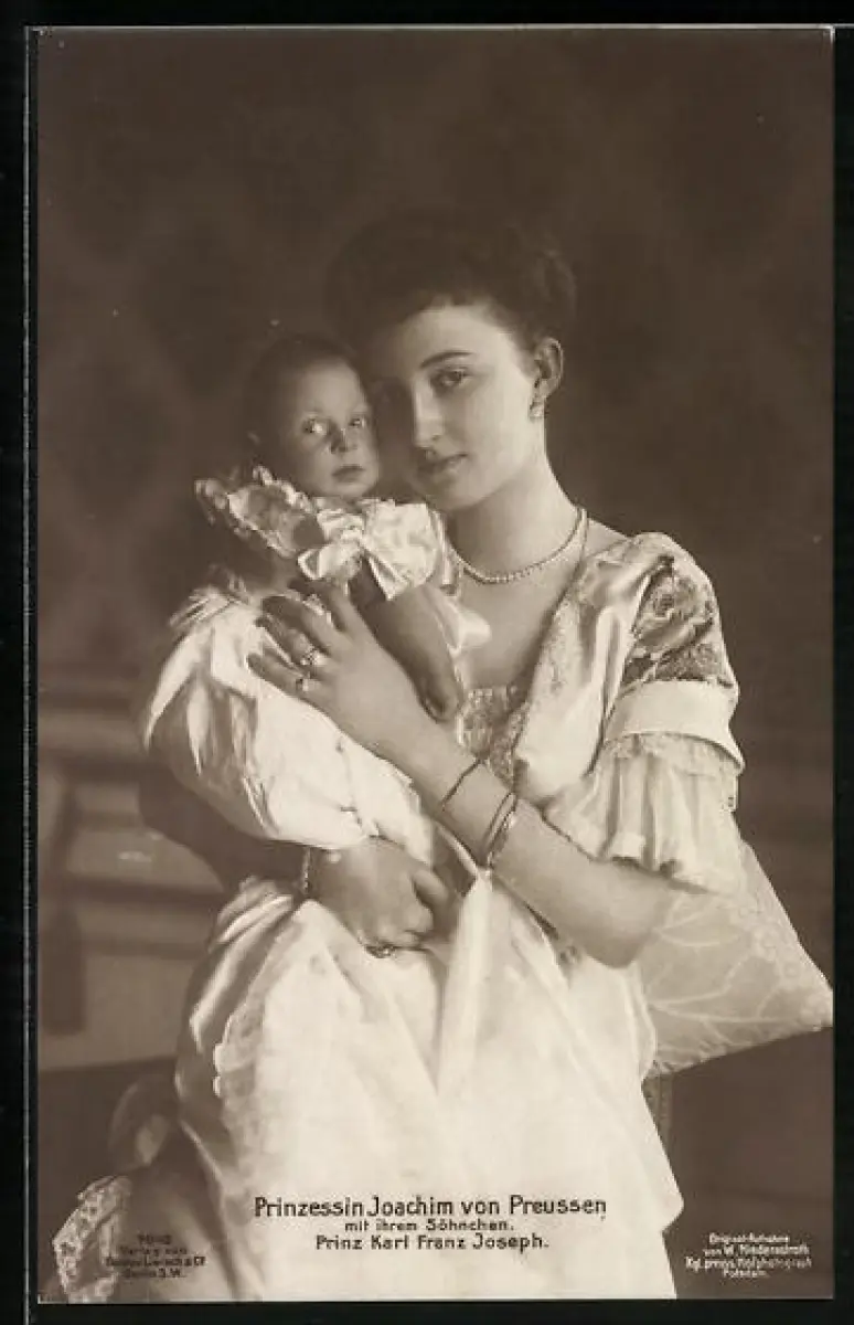 AK Prinzessin Joachim von Preussen mit ihrem Sohn Karl Franz Joseph als Täufling