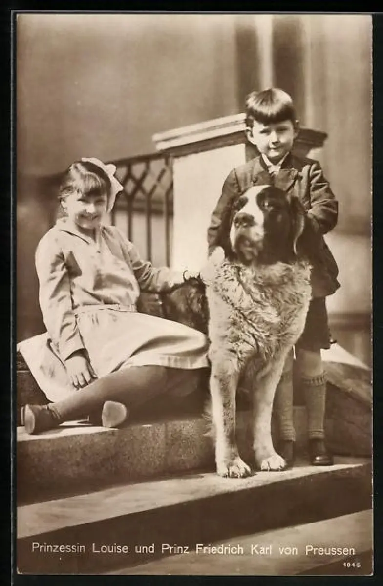 AK Prinzessin Louise & Prinz Friedrich Karl von Preussen mit einem Bernhardiner