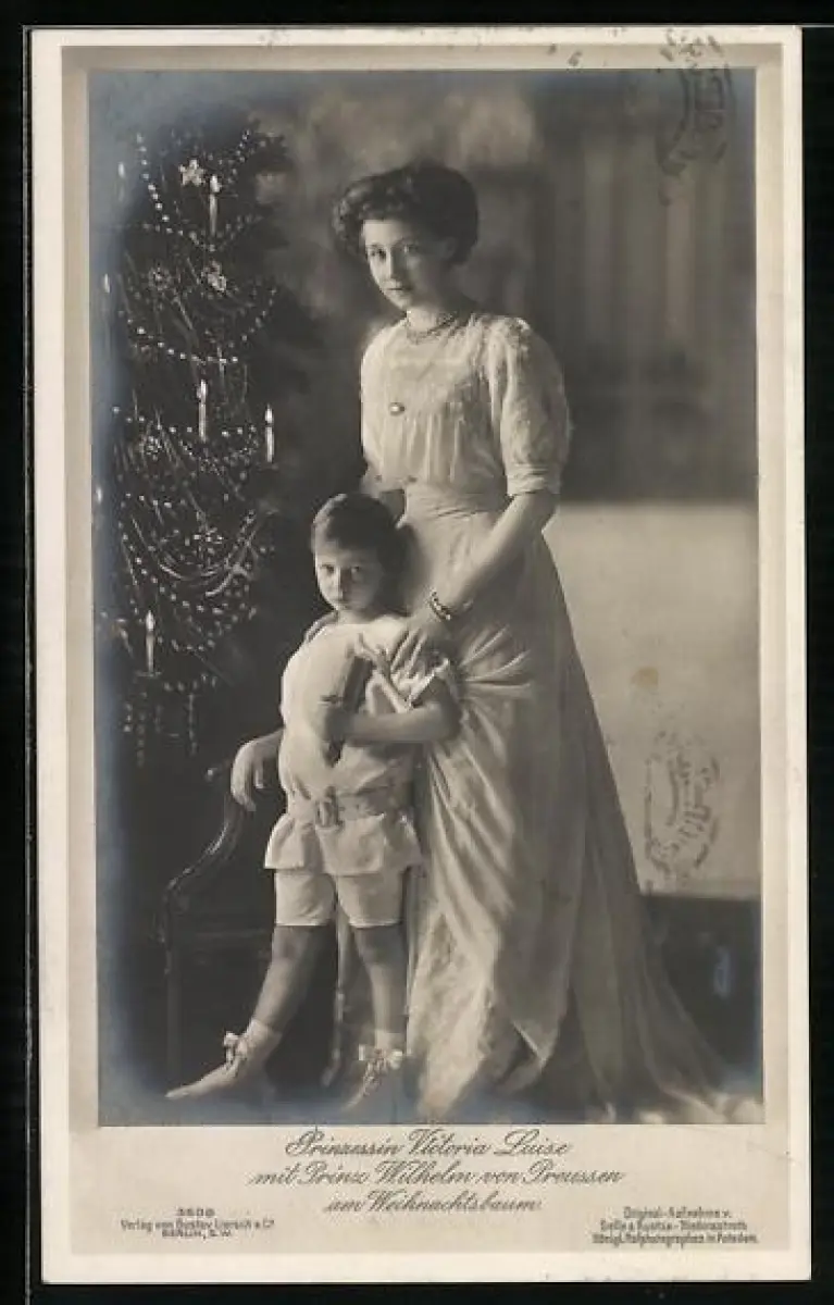 AK Prinzessin Victoria Luise mit Prinz Wilhelm von Preussen am Weihnachtsbaum