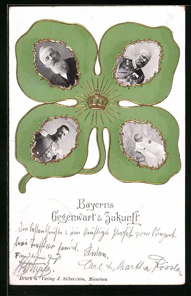 AK Prinzregent Luitpold mit Familie in einem Kleeblatt dargestellt