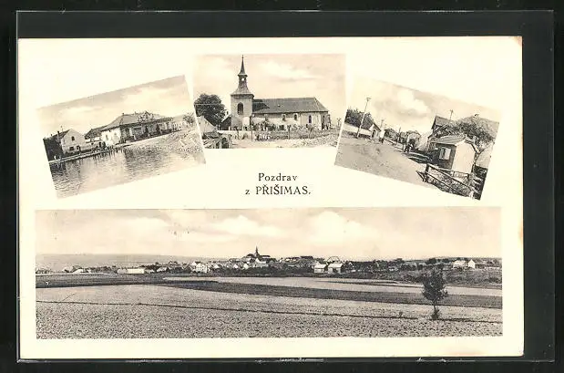 AK Prismasy, Kirche, Uferpartie, Ortspartie
