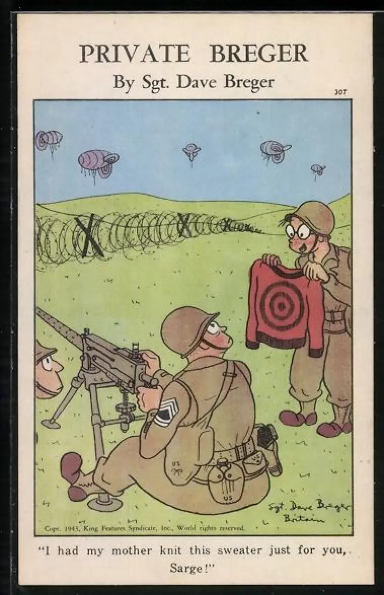 AK Private Breger by Sgt. Dave Breger, U.S. Soldaten in Uniform mit Maschinengewehr