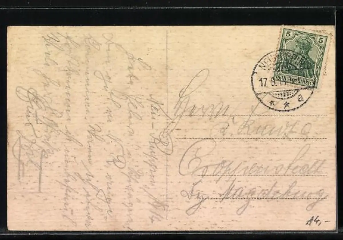alte Ansichtskarte, gelaufen 1914, Eckknicke oben, rückseitig Oberflächenschaden, guter Zustand