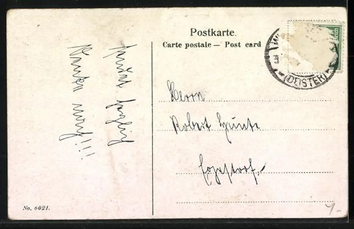 alte Ansichtskarte, gelaufen, Briefmarke entfernt, guter Zustand