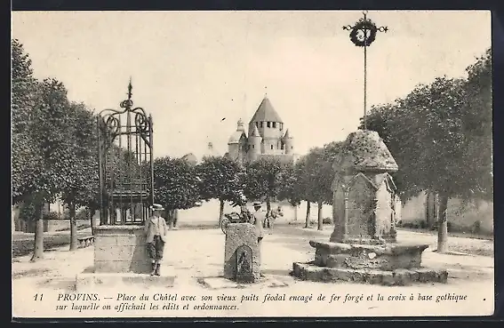 AK Provins, Place du Châtel avec son vieux Puits féodal