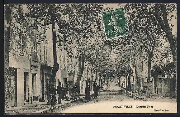 AK Puget-Ville, Quartier Neuf avec scène de rue animée et arbres bordant les trottoirs