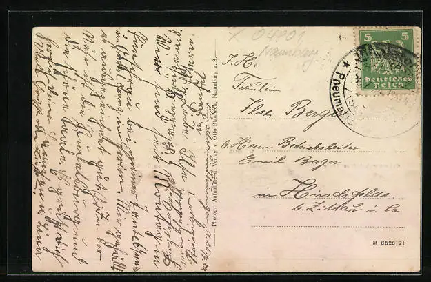 alte Ansichtskarte, gelaufen 1927, Eckknicke li. oben u. re. unten, Stempelspur, guter Zustand