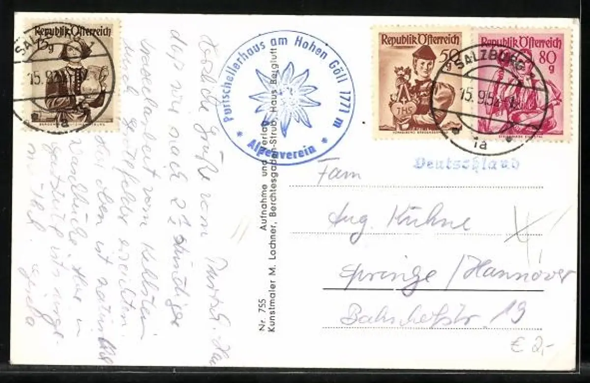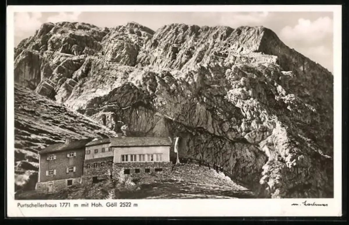 AK Purtschellerhaus, Berghütte mit Hoh. Göll