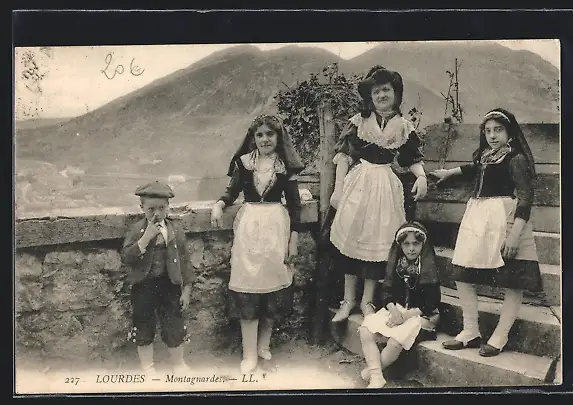 AK Pyrenäen / Pyrénées, Montagnards, Kinder in Tracht