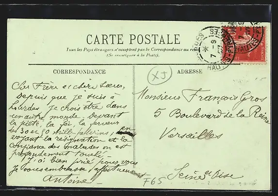 alte Ansichtskarte, gelaufen 1907, Stempelspur, guter Zustand