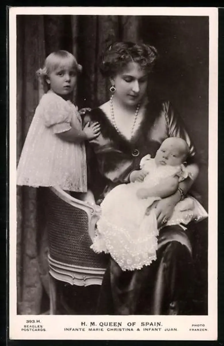 AK Queen Victoria Eugenie of Spain with Princess Maria Christina and Prince Juan