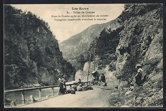 AK Queyras, Dans la Combe après un éboulement de rochers, Voyageurs transbordés attendant le courrier