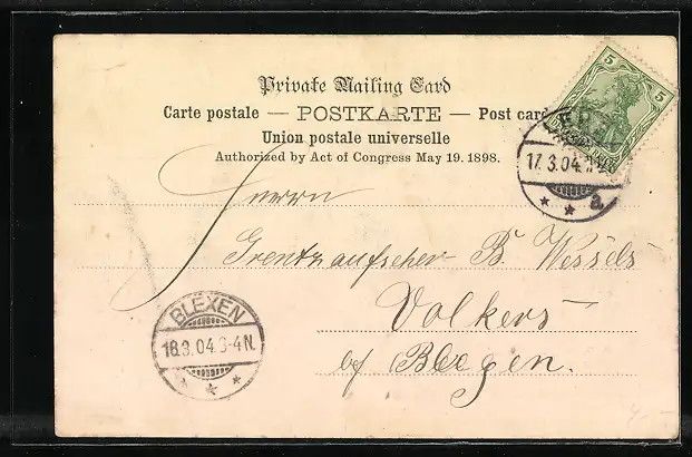 alte Ansichtskarte, gelaufen 1904, guter Zustand
