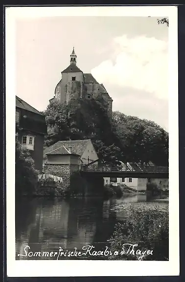 AK Raabs a. d. Thaya, Kirche und Brücke, Ortspartie