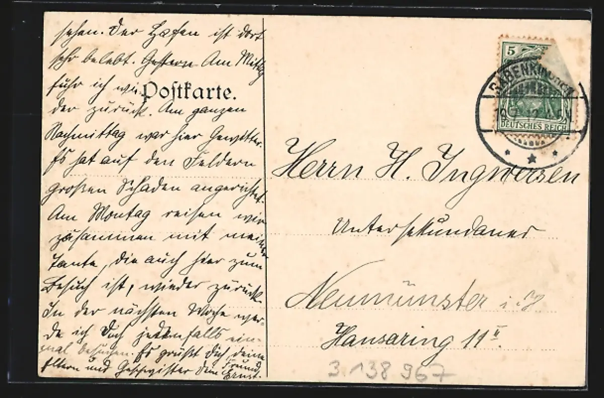 alte Ansichtskarte, gelaufen 1912, Briefmarke entfernt, guter Zustand