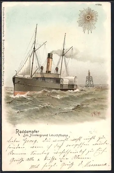 AK Rad-Dampfer mit Leuchtbake
