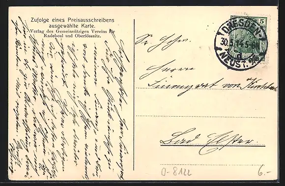 alte Ansichtskarte, gelaufen 1914, Stempelspur, guter Zustand