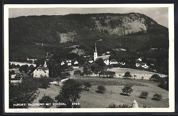 AK Radegund, Ortsansicht mit Schöckl