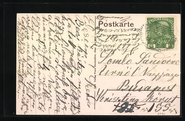 alte Ansichtskarte, gelaufen, Eckknick li. oben, obere Kante beschnitten
