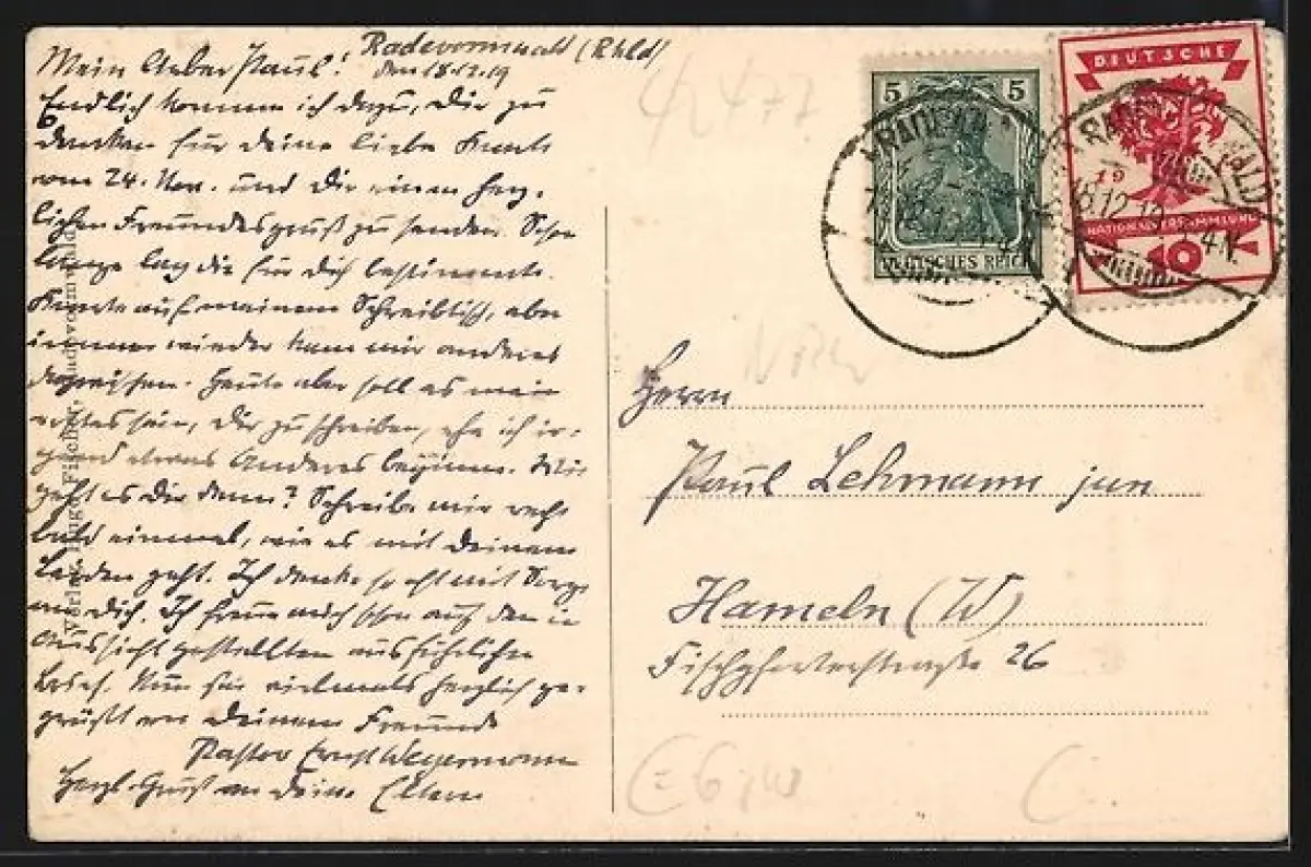 alte Ansichtskarte, gelaufen 1919, guter Zustand