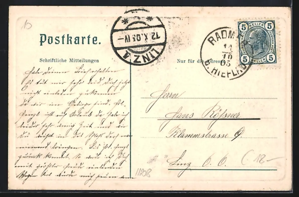 alte Ansichtskarte, gelaufen 1905, guter Zustand