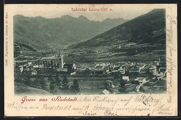 AK Radstadt, Ortsansicht aus der Vogelschau, Radstädter Tauern