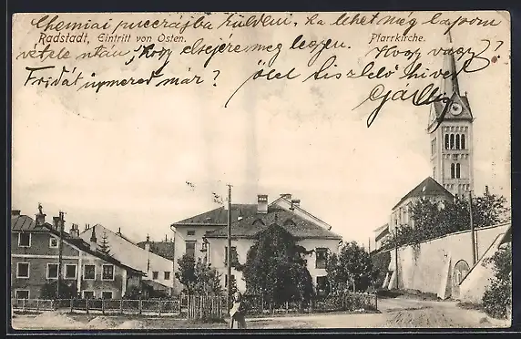 AK Radstadt, Strassenpartie an der Pfarrkirche