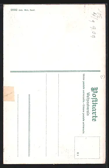 alte Ansichtskarte, ungelaufen, geklebter Einriss re. mittig, guter Zustand
