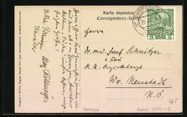 AK Ragusa von Gradac, Ortsansicht mit Bergen