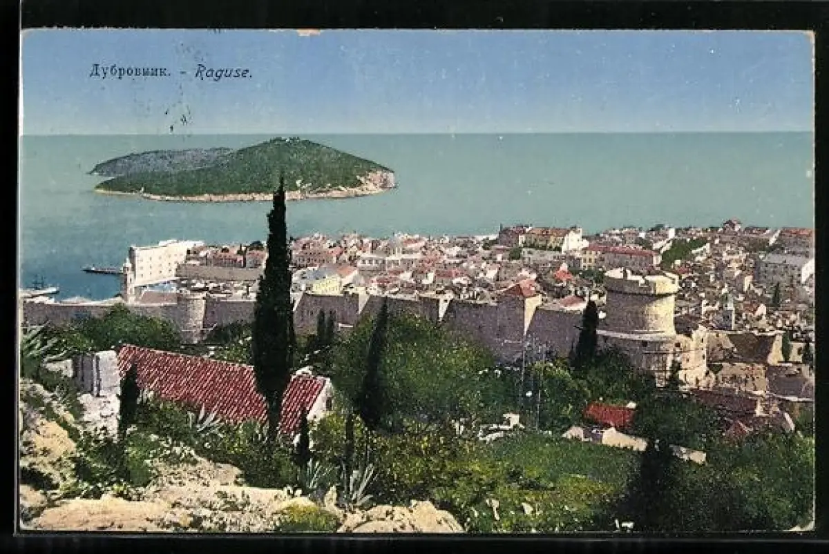 AK Raguse, Ortsansicht mit Festungsmauer und Insel