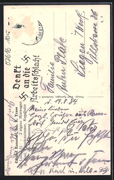 alte Ansichtskarte, gelaufen, Briefmarke entfernt, guter Zustand