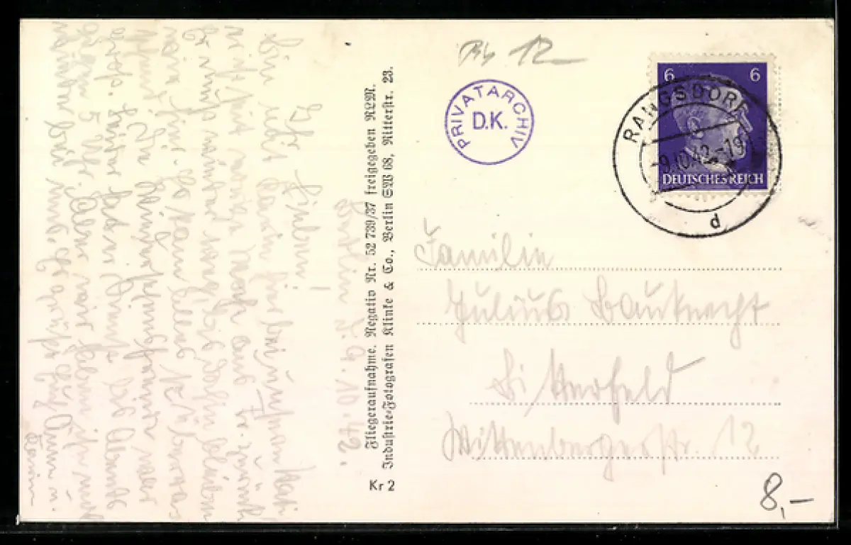 gelaufen 1942, Eckknick oben links, guter Zustand