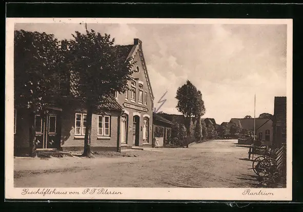 AK Rantrum, Strassenpartie mit Geschäftshaus Petersen