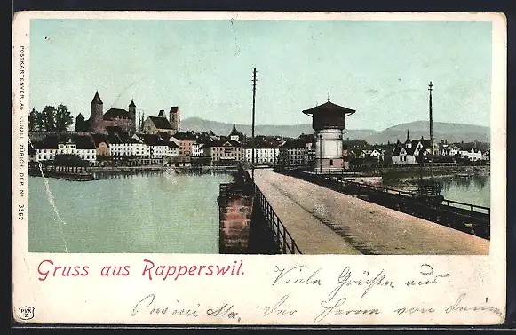 AK Rapperswil, Ortsansicht mit Wasserturm