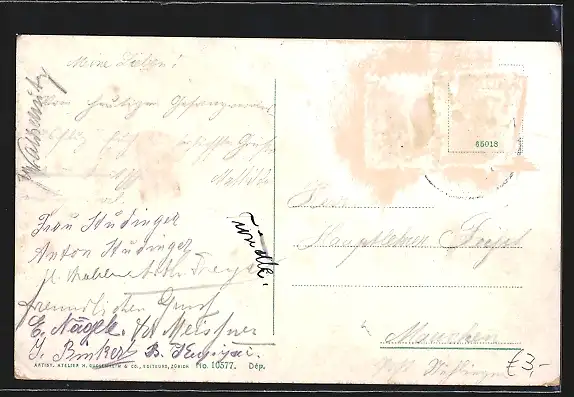 alte Ansichtskarte, gelaufen, Briefmarke entfernt, rückseitig Oberflächenschaden, Stempelspur, guter Zustand