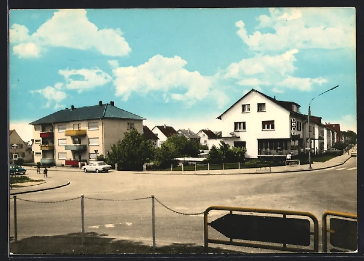 AK Rastatt /Baden, Rheinau, Strassenpartie mit Bank