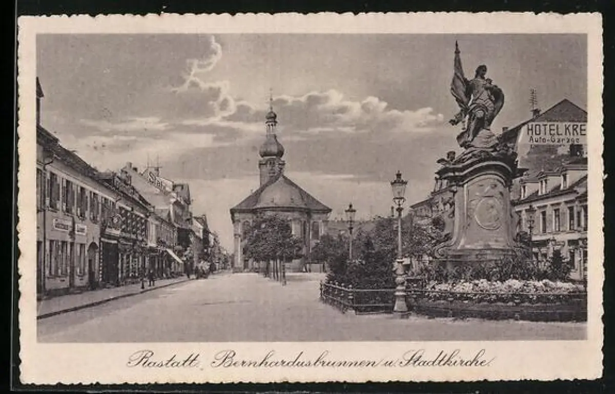 AK Rastatt, Bernhardusbrunnen, Stadtkirche