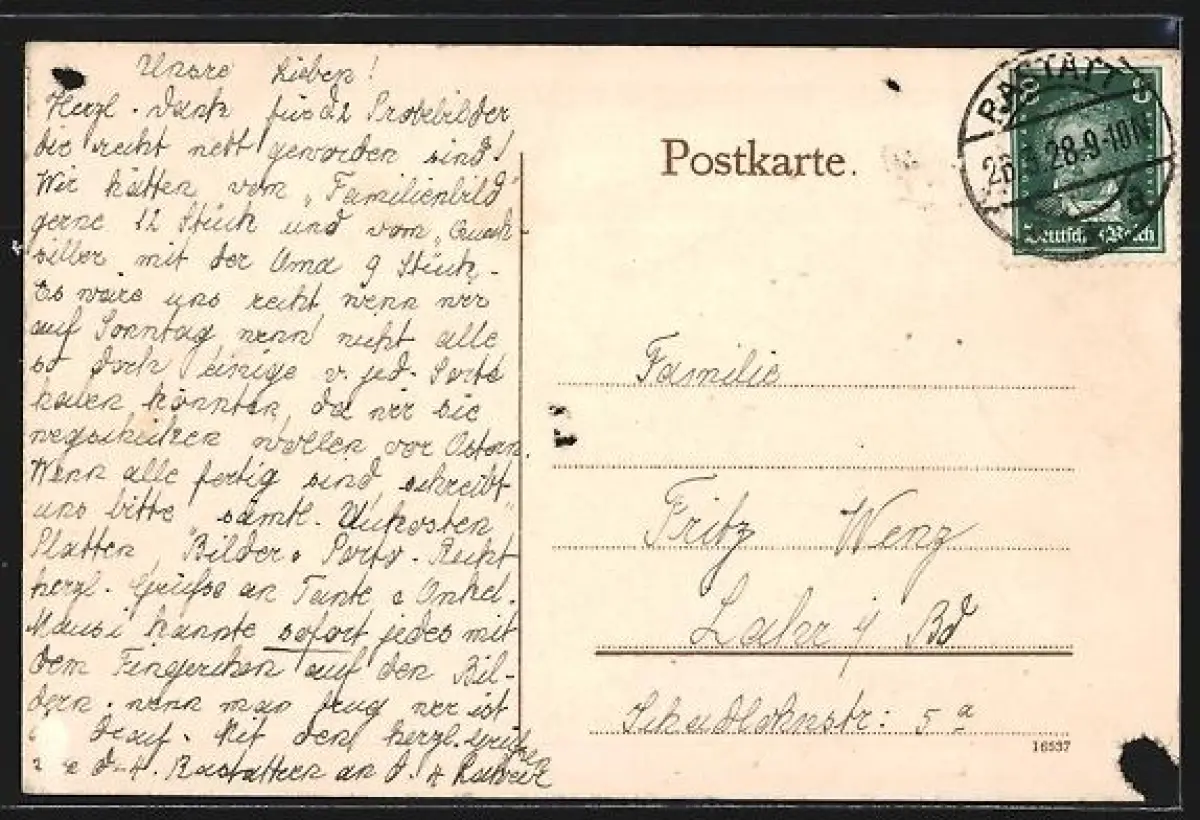 gelaufen 1928, rückseitig Klebe- und Papierreste, guter Zustand