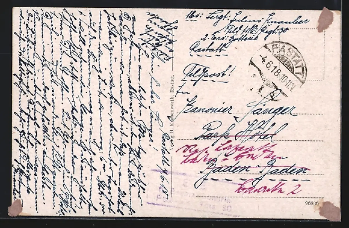 alte Ansichtskarte, gelaufen 1918, Eckknicke li. unten, rückseitig Klebe- und Papierreste, guter Zustand