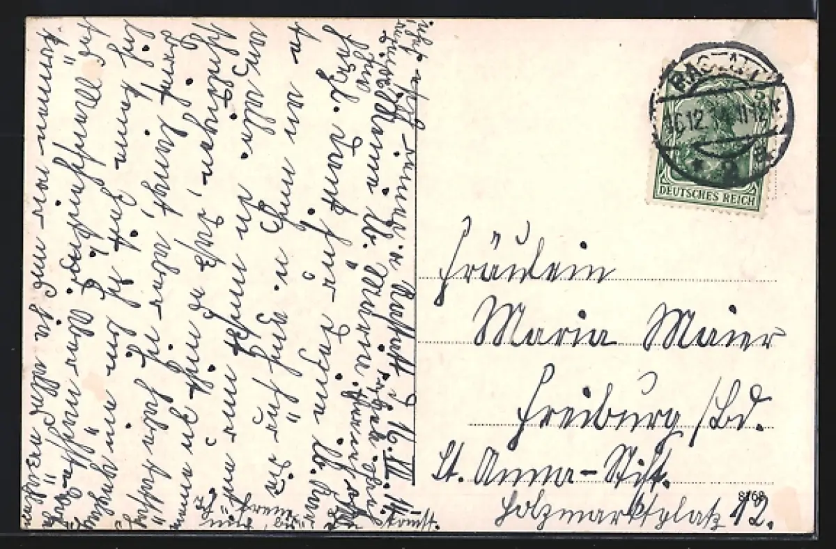 alte Ansichtskarte, gelaufen 1914, rückseitig Oberflächenschaden, guter Zustand